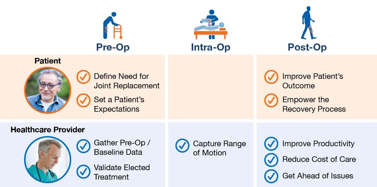 TracPatch connects pre-op data measurements with post-op recovery, providing evidence-based medicine throughout the care cycle.